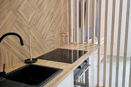Sprzedawane jest z pełnym wyposażeniem, w tym lodówka, pralka, płyta indukcyjna i pochłaniacz. Ogrzewanie elektryczne.
