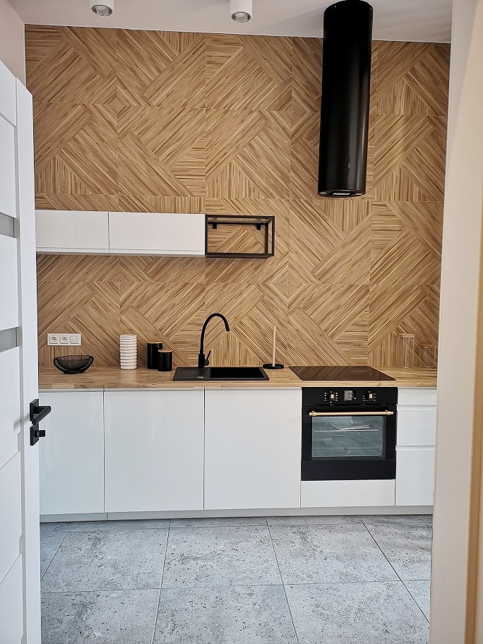 Sprzedawane jest z pełnym wyposażeniem, w tym lodówka, pralka, płyta indukcyjna i pochłaniacz. Ogrzewanie elektryczne.